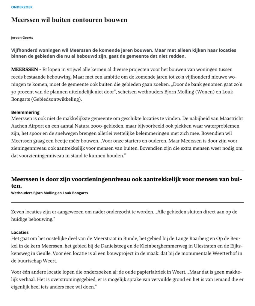 door: Fred KnarrenGeplaatst op: december 9, 2024december 16, 2024 Meerssen wil buiten contouren bouwen! Meerssen zoekt mogelijkheden om extra woningen te bouwen! Bron: De Limburger 9 december 2024